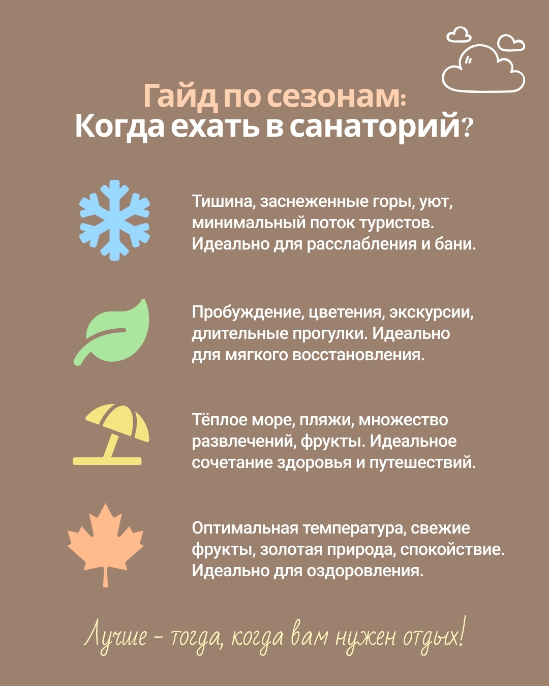 Когда лучше ехать в санаторий? Выбираем свой идеальный сезон!
